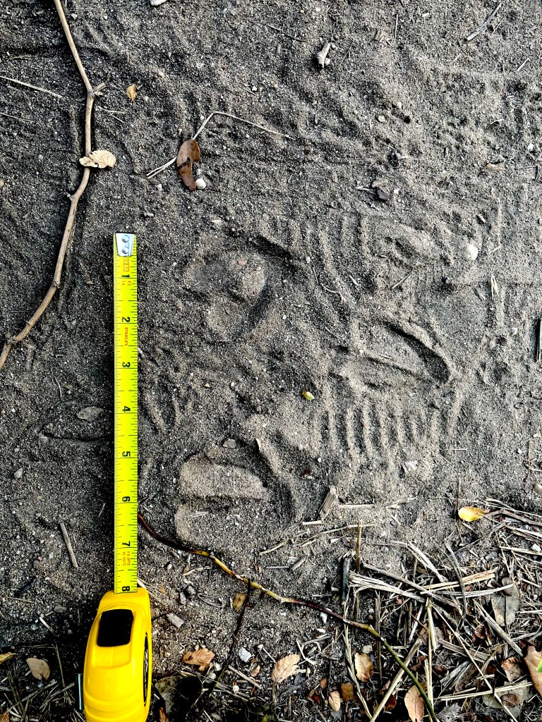 One of the first set of tracks I saw was from an Armadillo. The tracks are quite unique and difficult to confuse with any other species. I was really pleased to find these tracks as we do not have this species in Ontario. I did not have time to sketch them, but some photos are shown below: