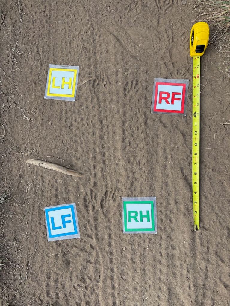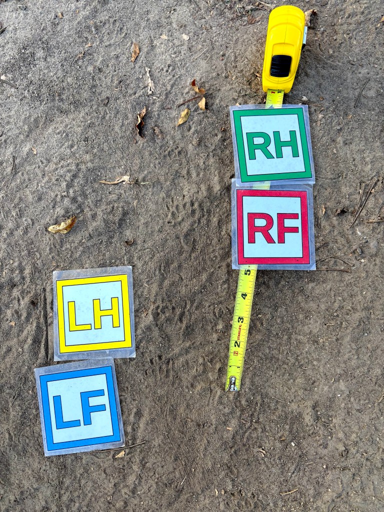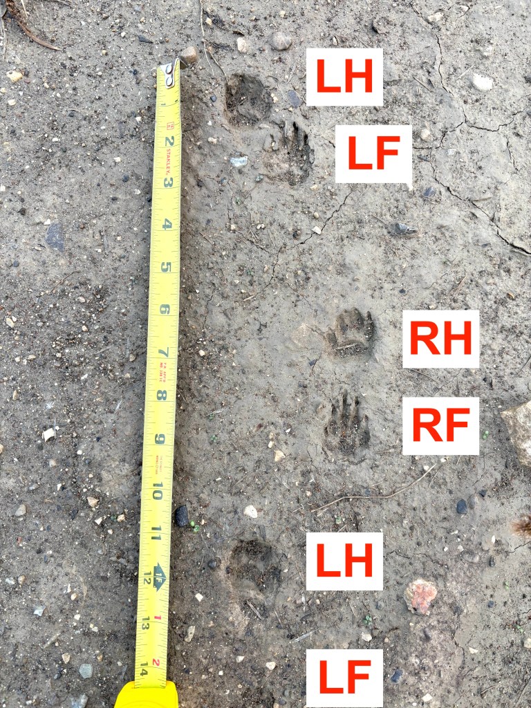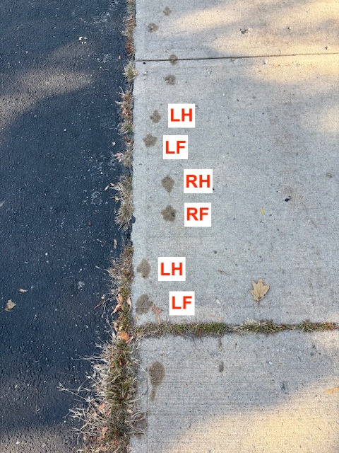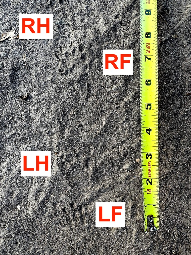 Goal of this post: Clarify what is meant by the various terms in the literature for a “pace” gait, with reference to some tracks of raccoon and skunk.