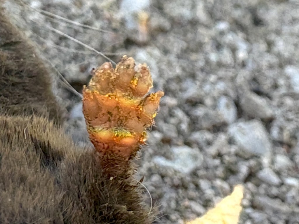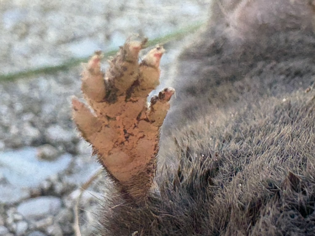 What I notice is the sharp claws. Here are some pictures of the front feet: