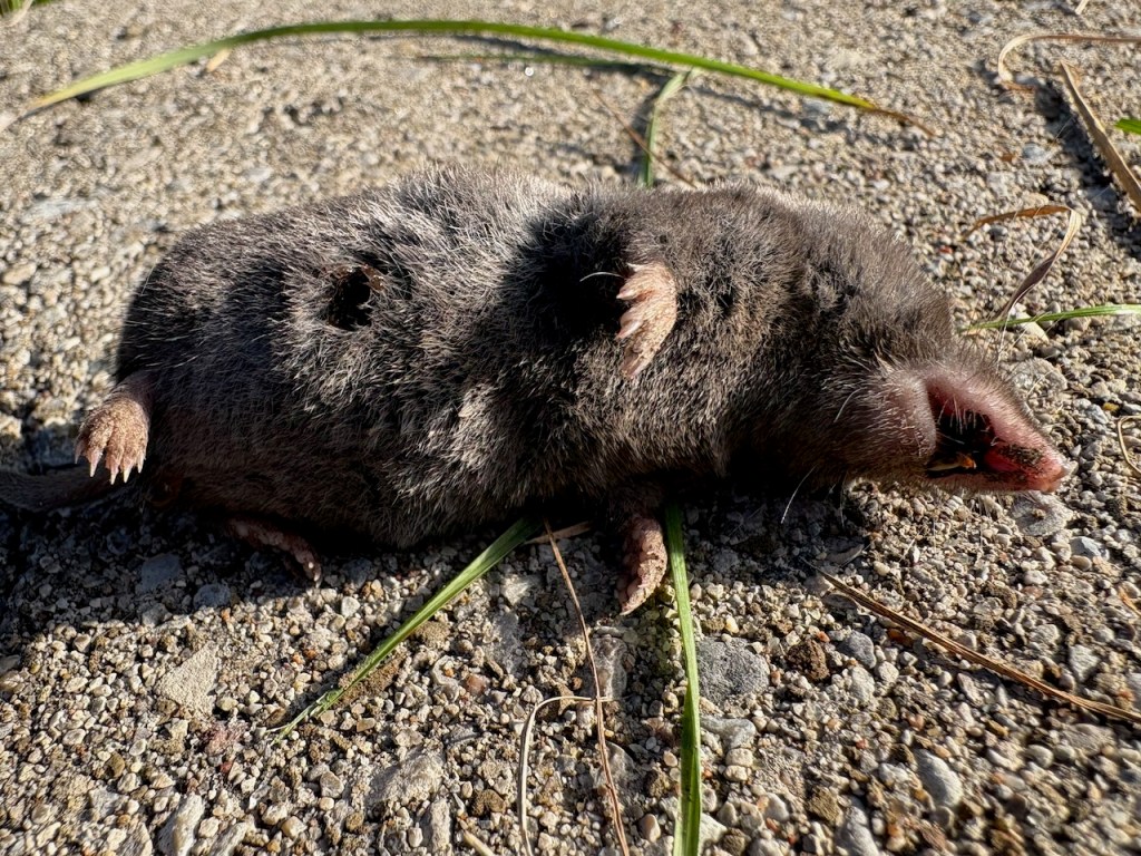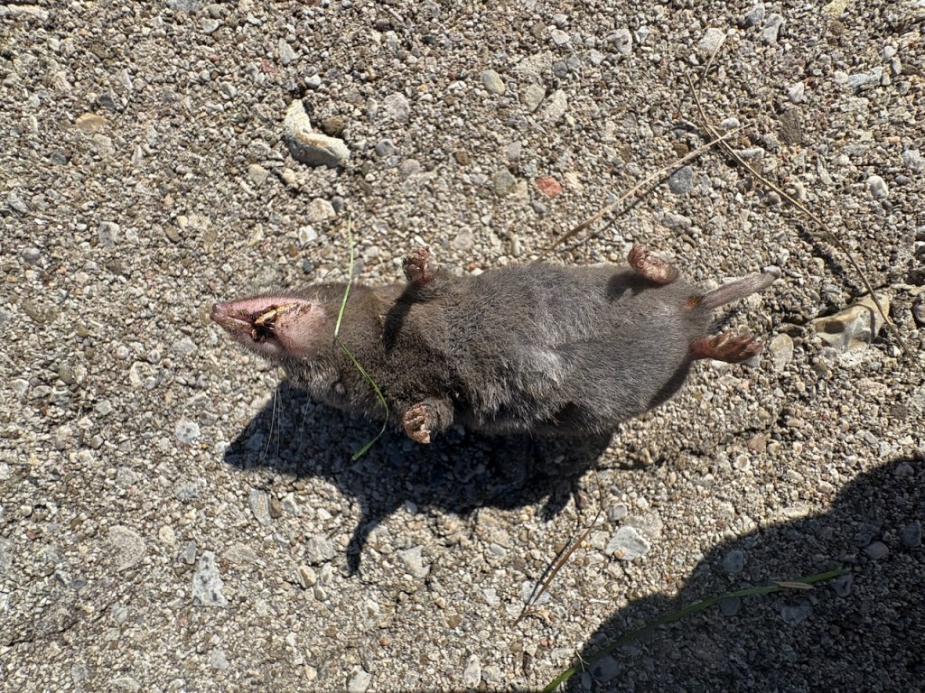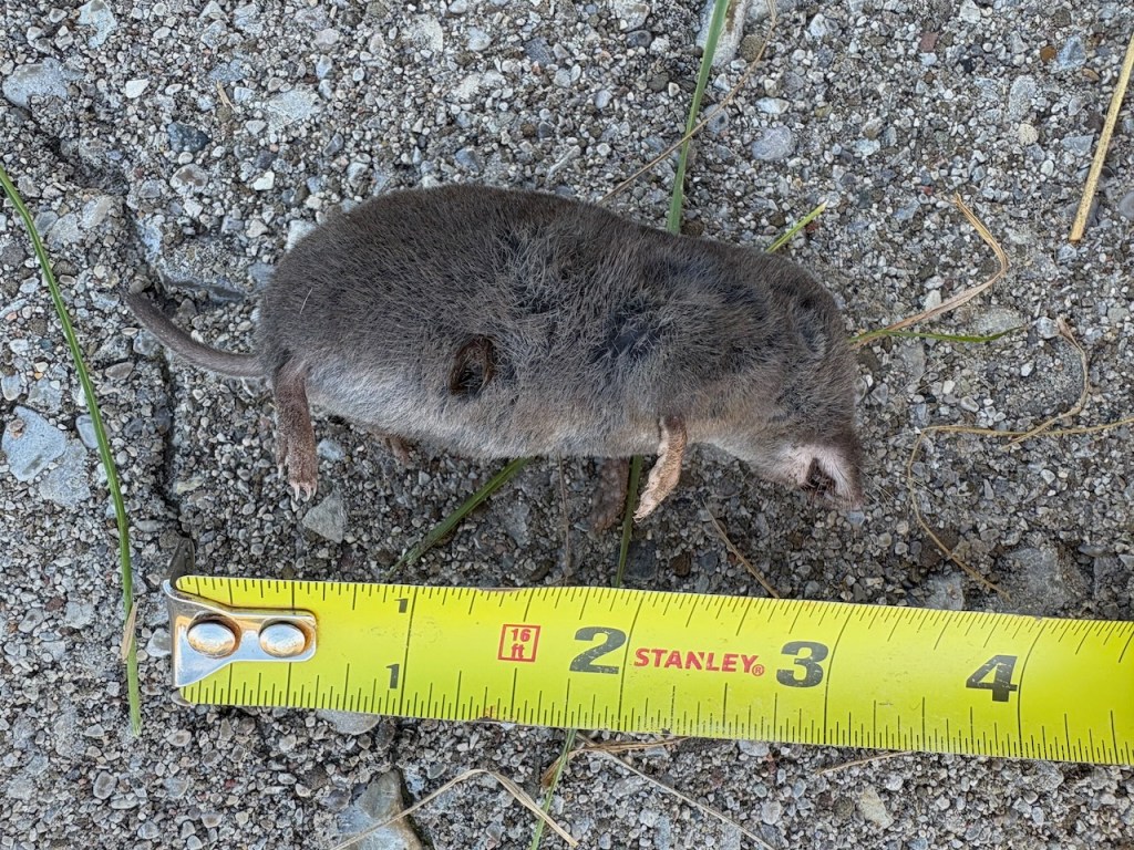 I found a dead shrew on the edge of the road near the University of Guelph. It was on the concrete wall that separates the sidewalk from a grass verge: