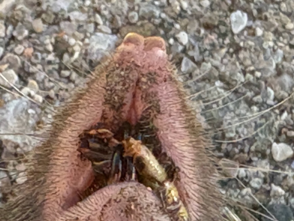 I seem to recall that there were puncture marks on this shrew as well. Byron explained that these shrews have pungent glands on their body which might explain why the shrew was killed but not eaten (because maybe this makes them taste bad!). The Wikipedia site gives a reference for this. Another super interesting thing about this shrew is that it has a venomous saliva that is used to subdue its prey. According to Wikipedia: