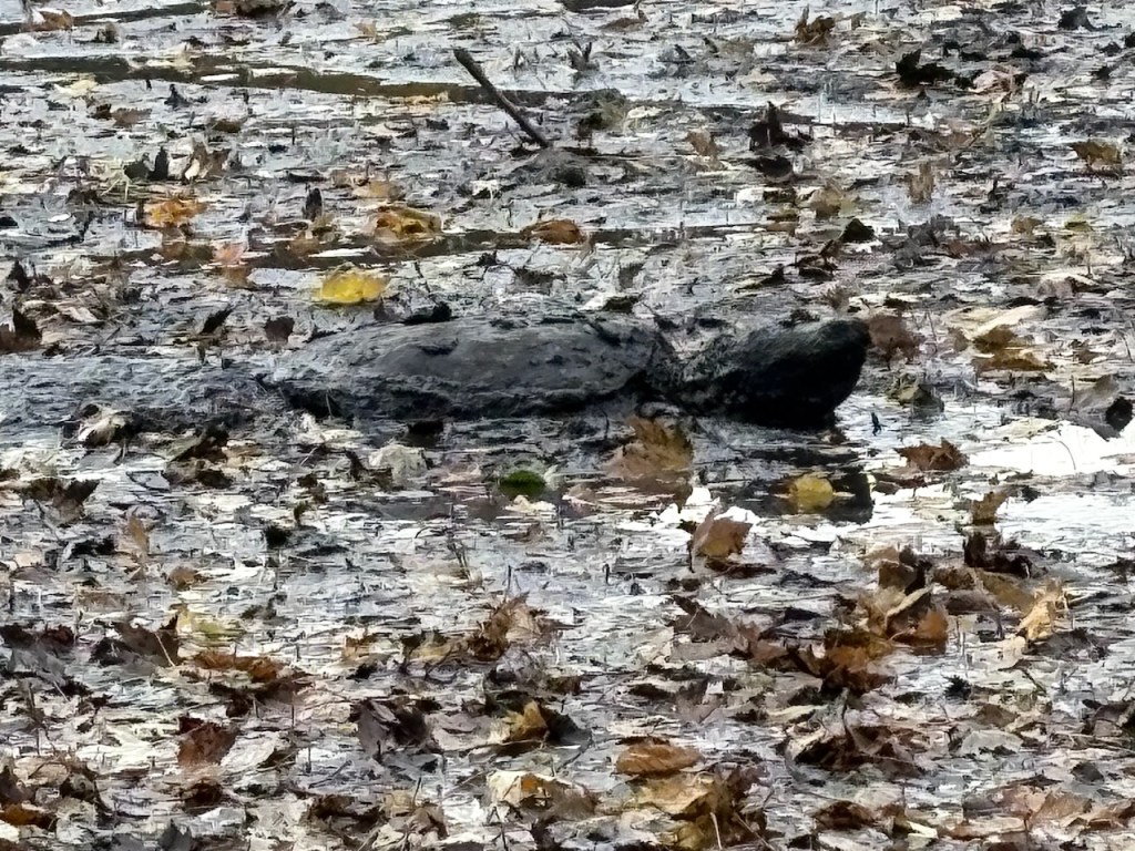 Was the turtle on its way to a hibernation spot? In Ontario, snapping turtles enter hibernation in aquatic habitats during the cold months, generally from October until the spring thaw. They choose sites with slow-moving or still water that provide a soft mud or silt substrate, such as ponds, marshes, lakes, or slow-flowing rivers. Typically, they settle near the shore in water deep enough to prevent freezing and with sufficient oxygen levels. During hibernation, snapping turtles bury themselves or rest beneath mud, leaf litter, or submerged debris, greatly reducing their activity and metabolic rate. According to Wikipedia – In northern climates where water freezes over, common snapping turtles employ a specialized method called extrapulmonary respiration, absorbing necessary oxygen from the water through membranes in their mouths and throats while hibernating in the mud for over six months. If this method proves insufficient, they switch to an anaerobic metabolic process, which burns stored sugars and fats without oxygen to survive the prolonged winter period.
