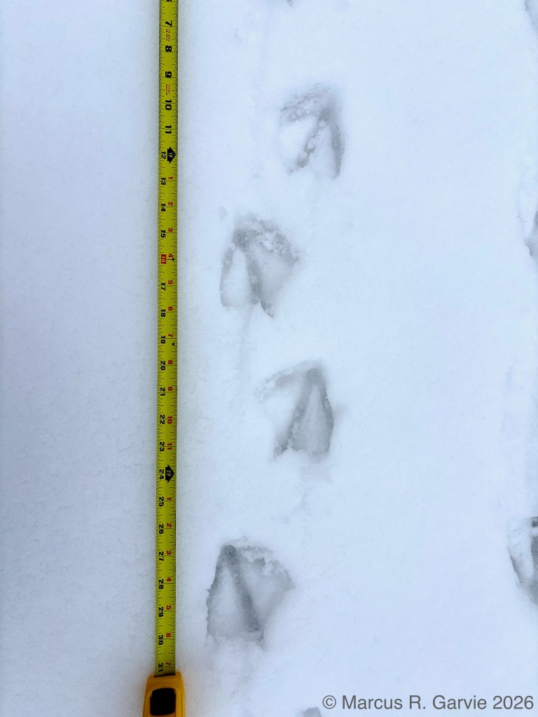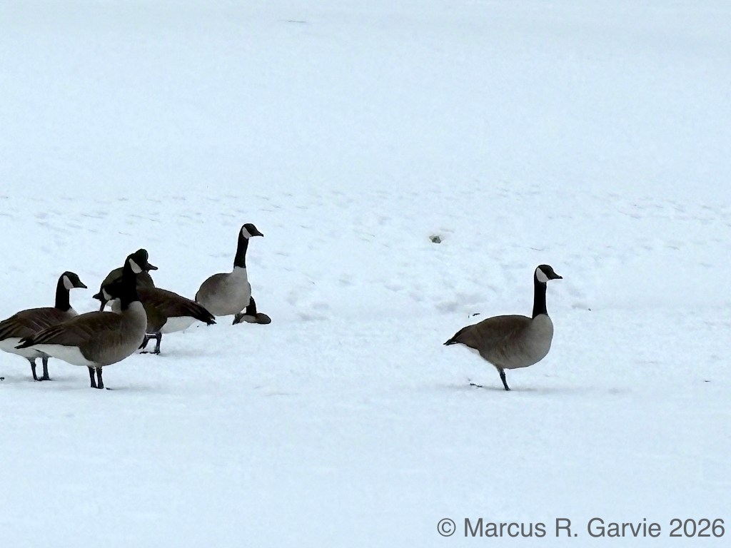 In the distance, I could see Canada geese on the snow where a stream cuts across the golf course, so I headed to investigate.