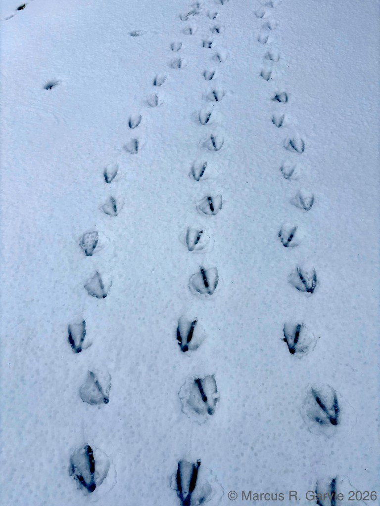 Notice how the metatarsal pad registers lightly, and toe 1 doesn’t register. I was then excited to backtrack some of the goose trails and find their landing spots: