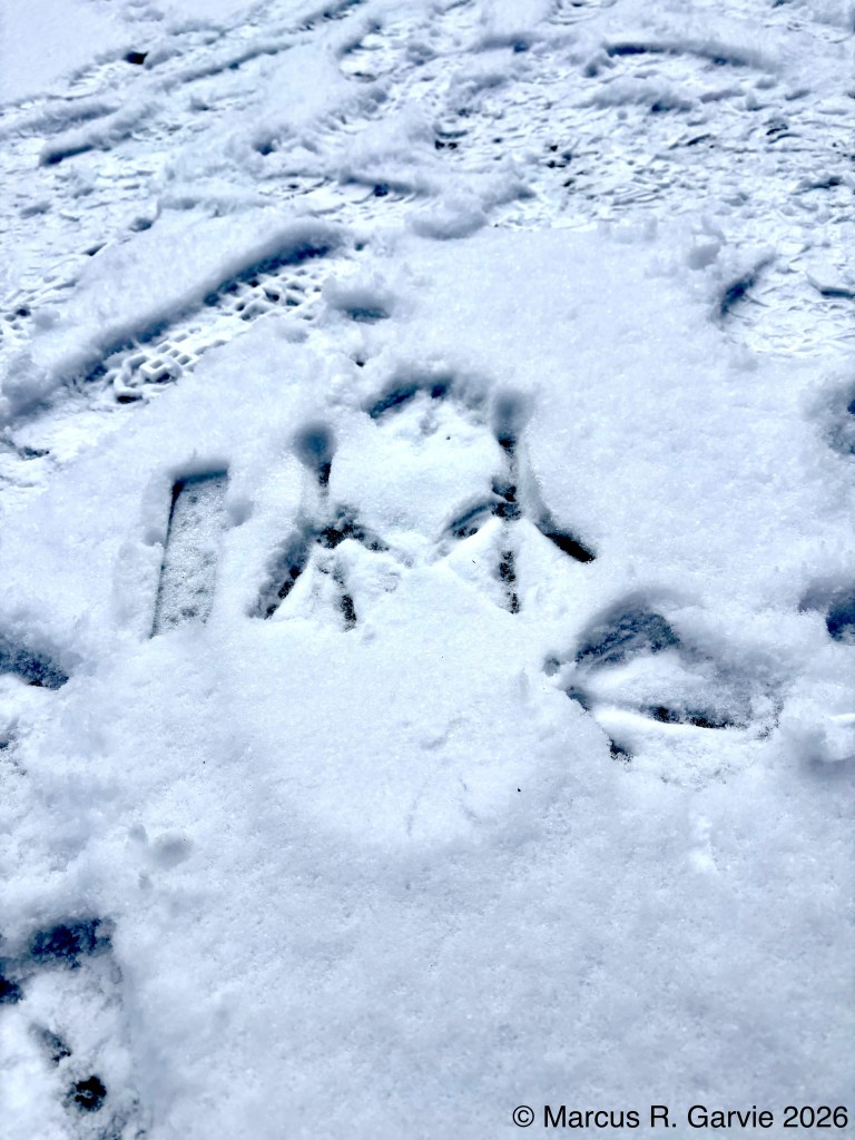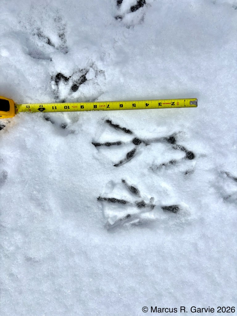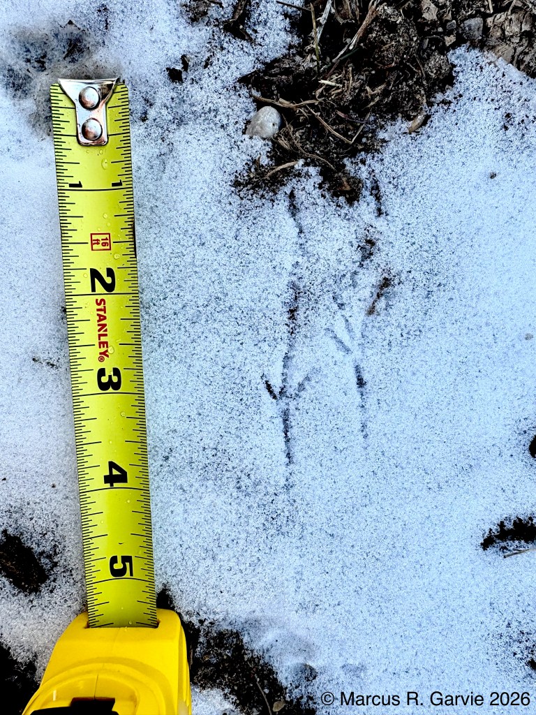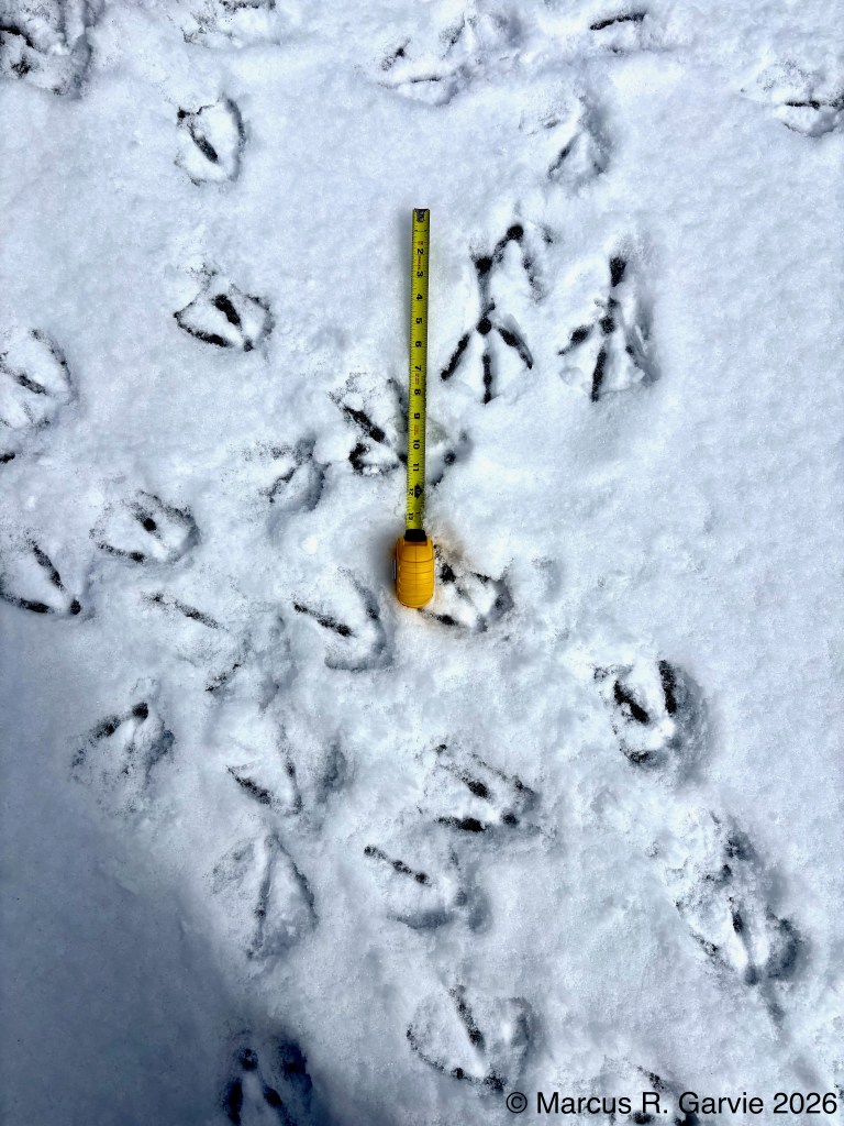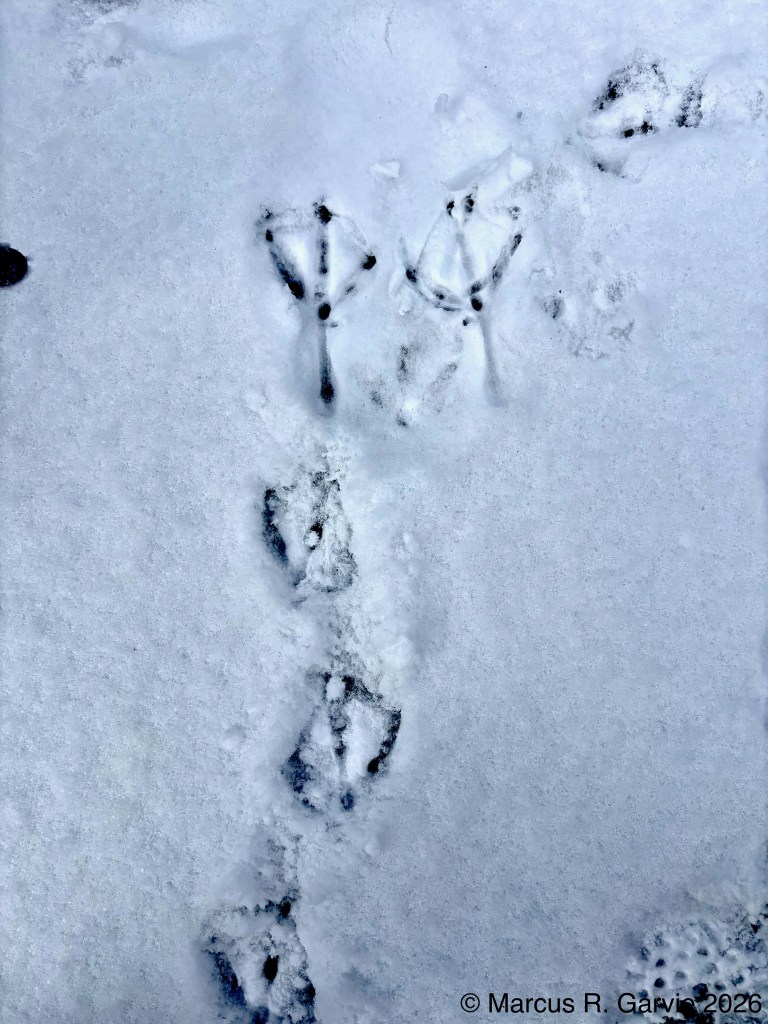 In case you were wondering, the other tracks are from a Striped Skunk! They were everywhere, and some of the tracks are very clear. Even though I have documented these tracks a few times, I can’t help showing them again. They are one of my favourite tracks: