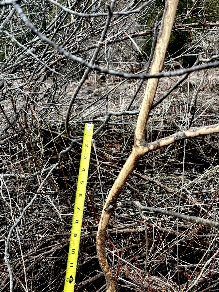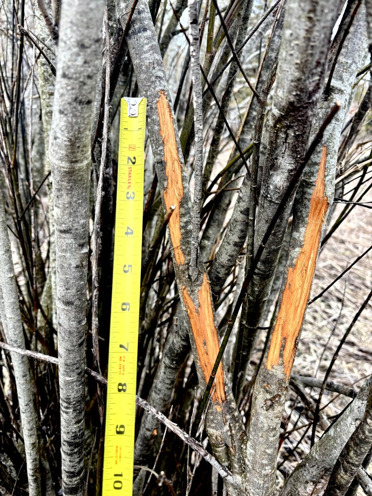 We also saw some nice examples of deer cambium-feeding sign (also called incisor scrapes) on willow trees in a wet meadow.